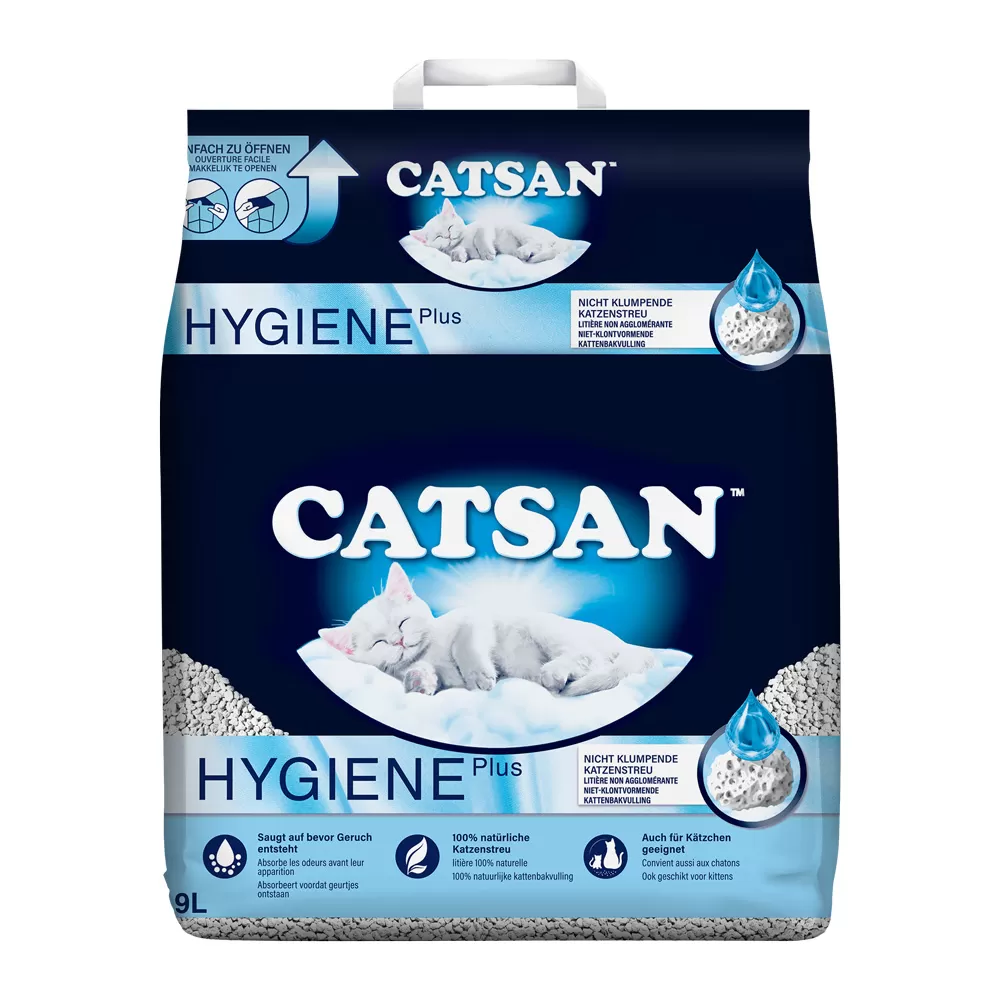Η CATSAN™ Hygiene είναι κατασκευασμένη από 100% φυσικές πρώτες ύλες, χαλαζία και ασβεστόλιθο, που της δίνουν το λευκό της χρώμα. Δεν περιέχει τεχνητά πρόσθετα, είναι απαλλαγμένη από αλλεργιογόνα, καθιστώντας την κατάλληλη εκτός από ενήλικες γάτες και για γατάκια.