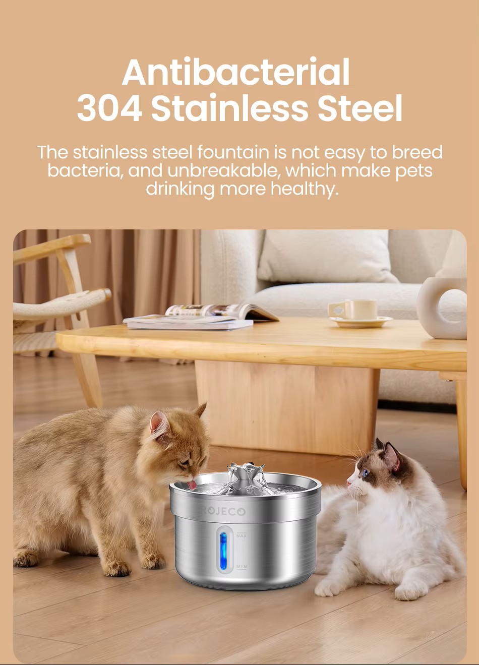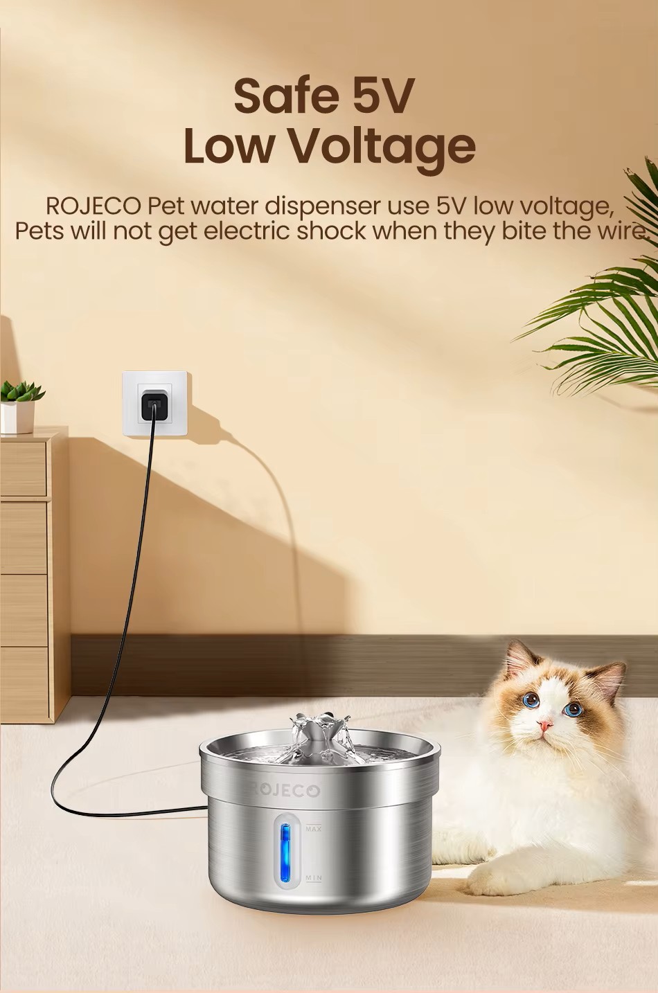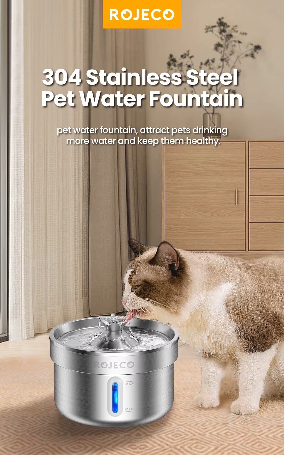 Αυτόματη Ανοξείδωτη Ηλεκτρική Ποτίστρα Σιντριβάνι ROJECO Χωρητικότητας: 2lt