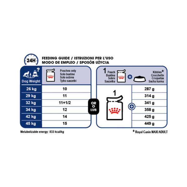 Για να ικανοποιήσει τις ατομικές προτιμήσεις κάθε σκύλου, το ROYAL CANIN® Maxi Adult είναι επίσης διαθέσιμο σε ξηρά τροφή, με τραγανές και νόστιμες κροκέτες.