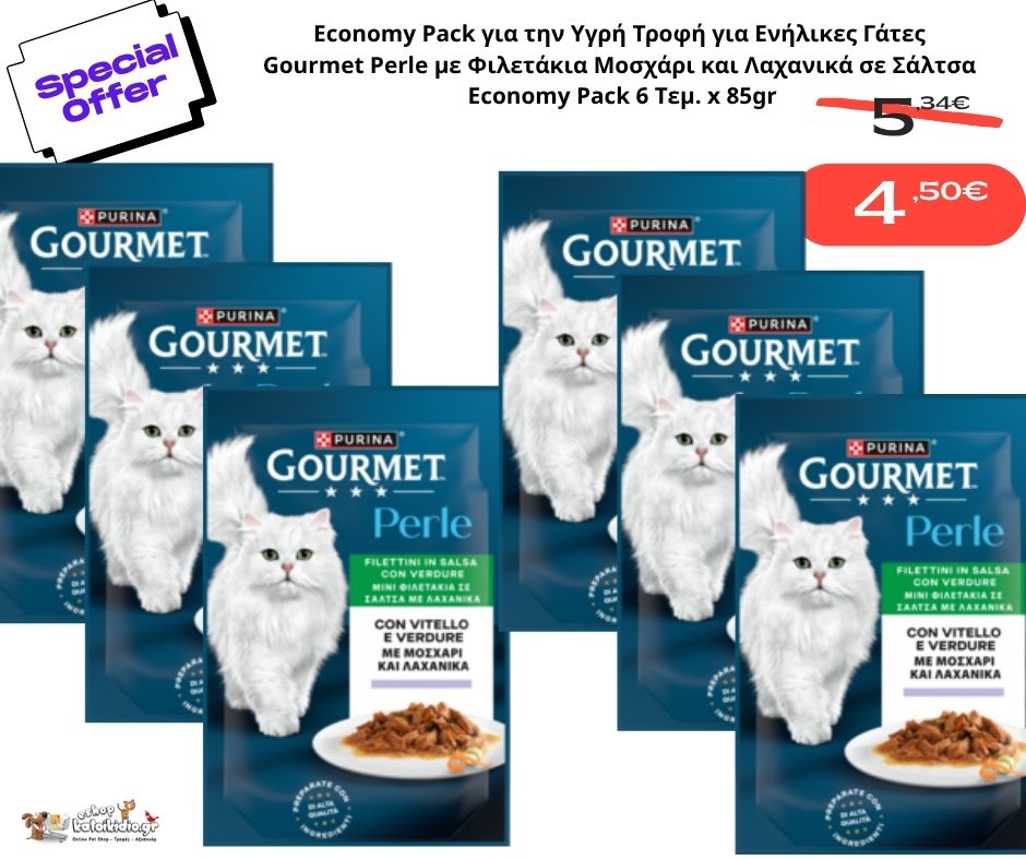 Economy Pack για την Υγρή Τροφή για Ενήλικες Γάτες Gourmet Perle με Φιλετάκια Μοσχάρι και Λαχανικά σε Σάλτσα Economy Pack 6 Τεμ. x 85gr