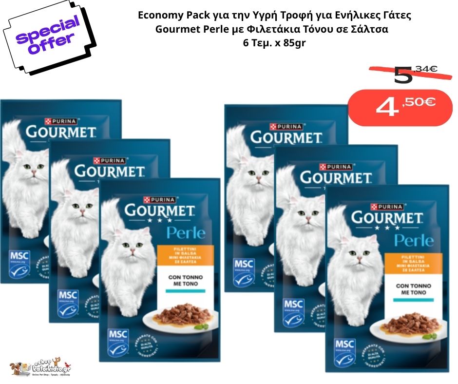 Economy Pack για την Υγρή Τροφή για Ενήλικες Γάτες Gourmet Perle με Φιλετάκια Τόνου σε Σάλτσα 6 Τεμ. x 85gr