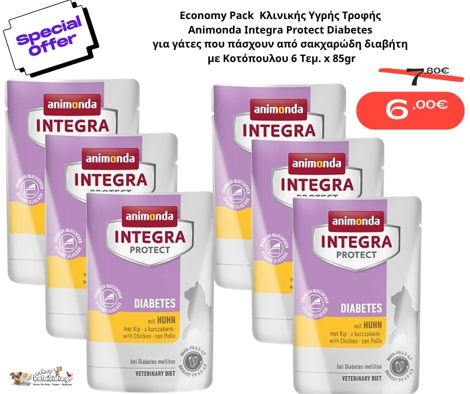 Economy Pack Κλινικής Υγρής Τροφής Animonda Integra Protect Diabetes για γάτες που πάσχουν από σακχαρώδη διαβήτη με Κοτόπουλου 6 Τεμ. x 85gr