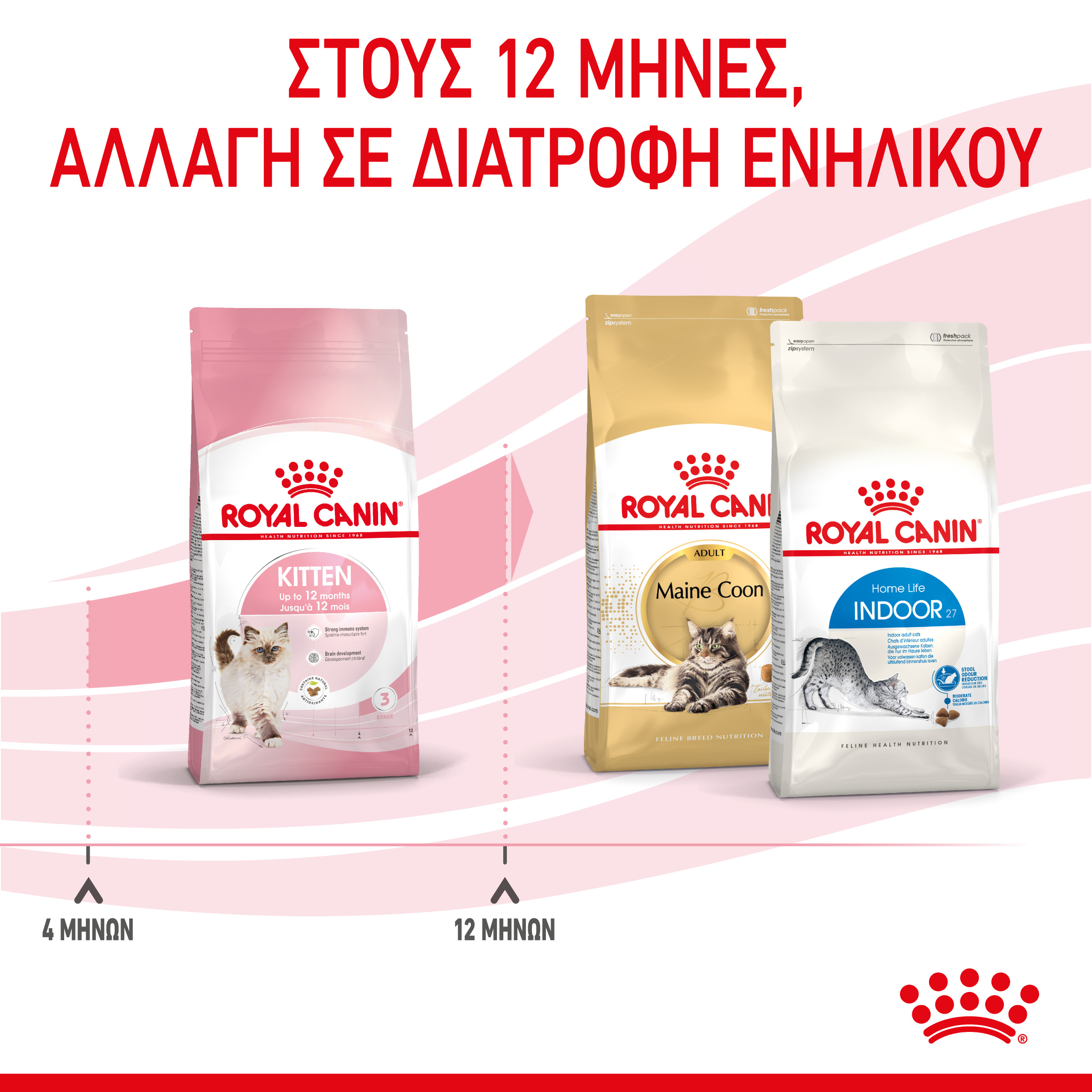 Το ROYAL CANIN® Kitten είναι κατάλληλο για γατάκια ηλικίας έως 12 μηνών και έχει βελτιωμένη ανοχή στο πεπτικό σύστημα χάρη στη συμπερίληψη της L.I.P - πρωτεΐνης που έχει επιλεγεί λόγω του ποσοστού αφομοιωσιμότητας 90%.