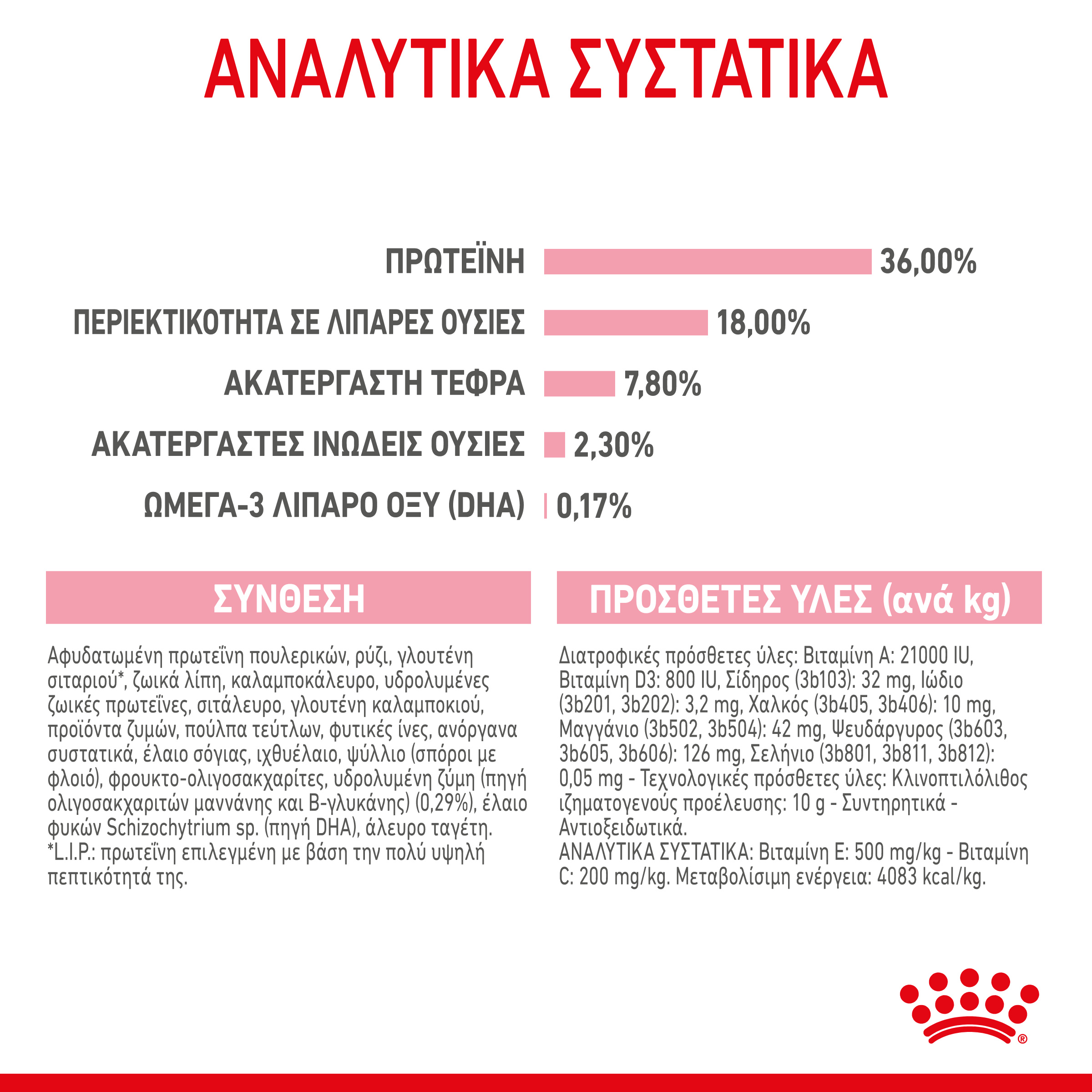 Επιλεγμένη πρωτεΐνη με πεπτικότητα άνω του 90% (Royal Canin).