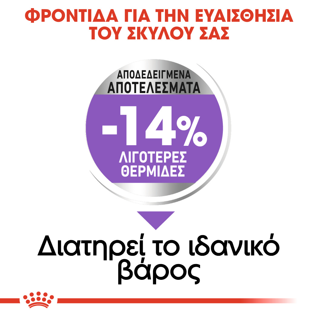 Η ROYAL CANIN® Sterilized Mini δοκιμάζεται και αποδεικνύεται επιστημονικά ότι είναι 14% χαμηλότερη σε θερμίδες από μία κανονική τροφή για ενήλικους σκύλους.