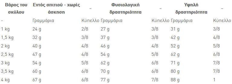 - Για ώριμες, πολύ μικρόσωμες φυλές σκύλων (μέχρι 4 κιλά)