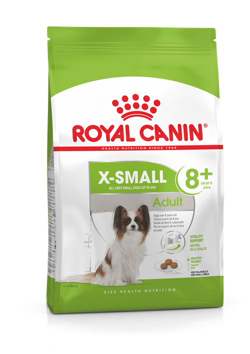 Κατάλληλο για πολύ μικρόσωμους σκύλους ηλικίας άνω των 8 ετών που ζυγίζουν έως και 4 κιλά, το ROYAL CANIN® X-Small Adult 8+ είναι ειδικά σχεδιασμένο με όλες τις διατροφικές ανάγκες του μικρόσωμου ενήλικου σκύλου σας στο μυαλό.