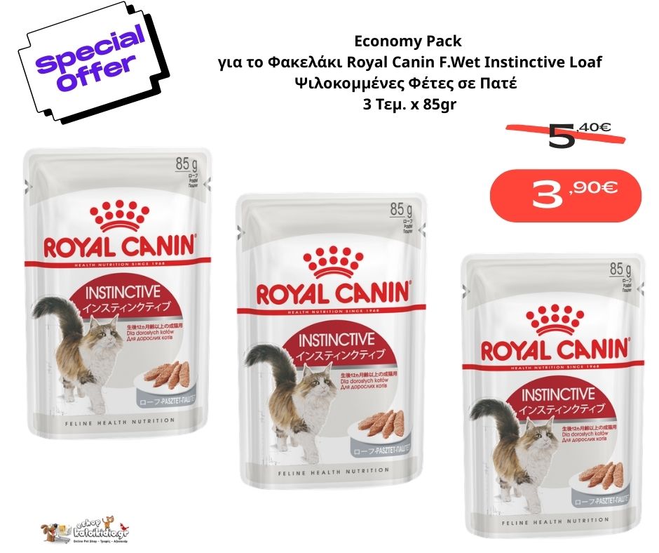 Economy Pack για την Φακελάκι Royal Canin F.Wet Instinctive Loaf Ψιλοκομμένες Φέτες σε Πατέ 3 Τεμ. x 85gr