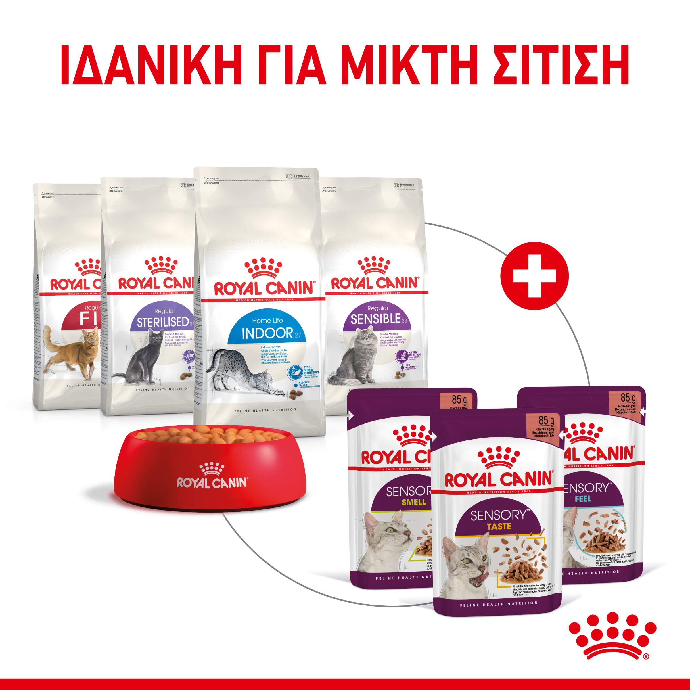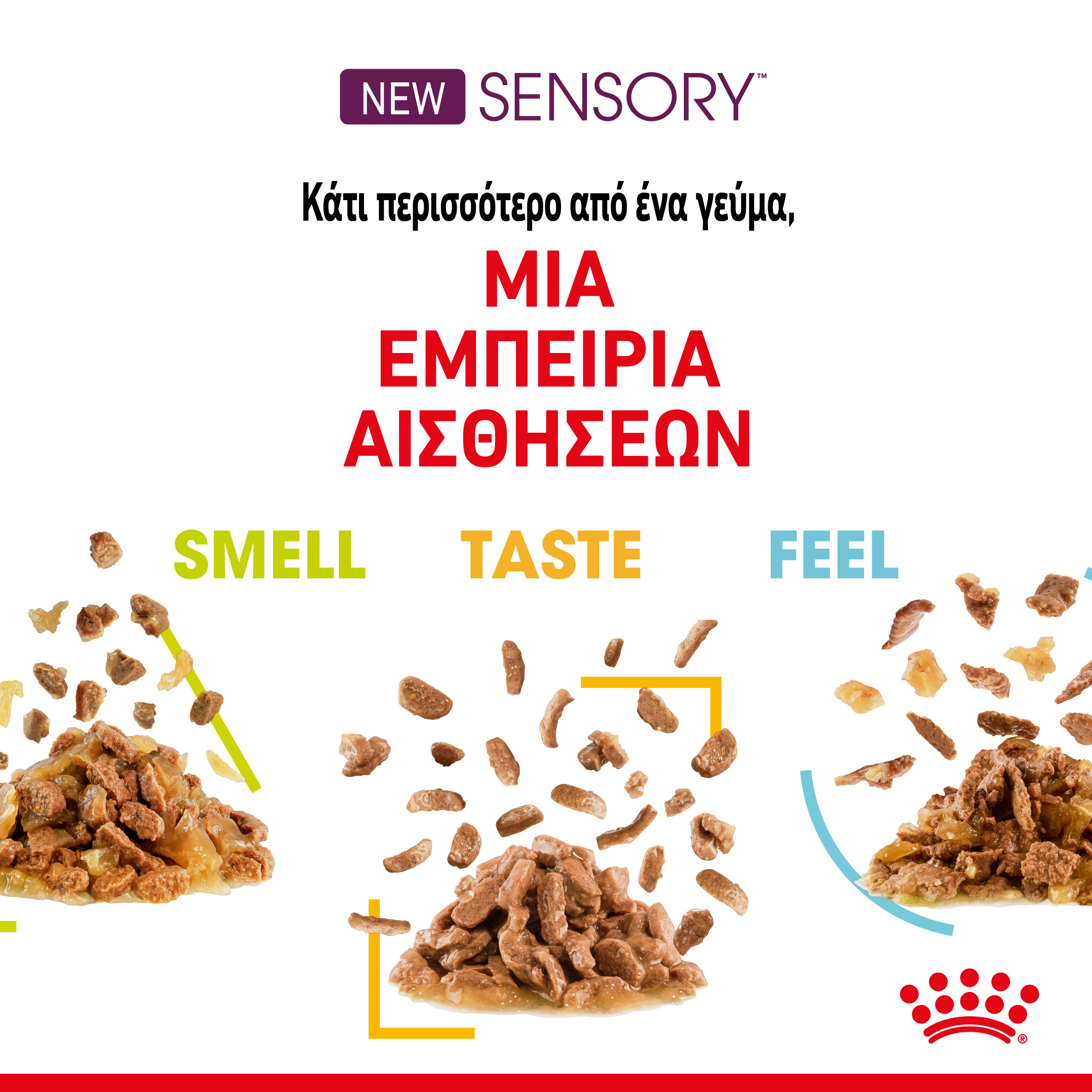 Το ROYAL CANIN® SENSORY™ βοηθά στη διεύρυνση των αισθήσεων της γάτας και ενισχύει τη διατροφική τους εμπειρία.