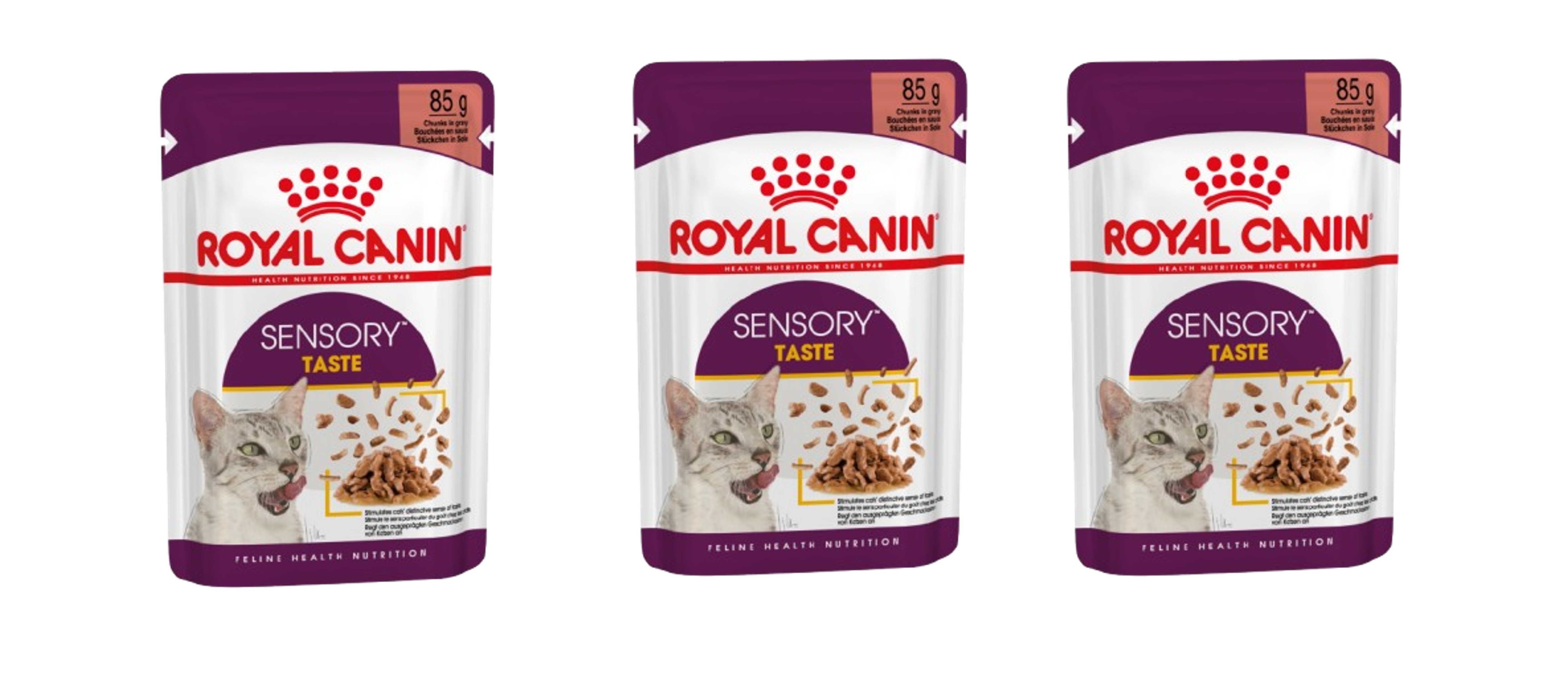 Για να ικανοποιήσει τις ατομικές προτιμήσεις κάθε γάτας, το ROYAL CANIN® Sensory Taste είναι επίσης διαθέσιμο με κομματάκια σε σάλτσα για βέλτιστη ποικιλία γεύσης και υφής.
