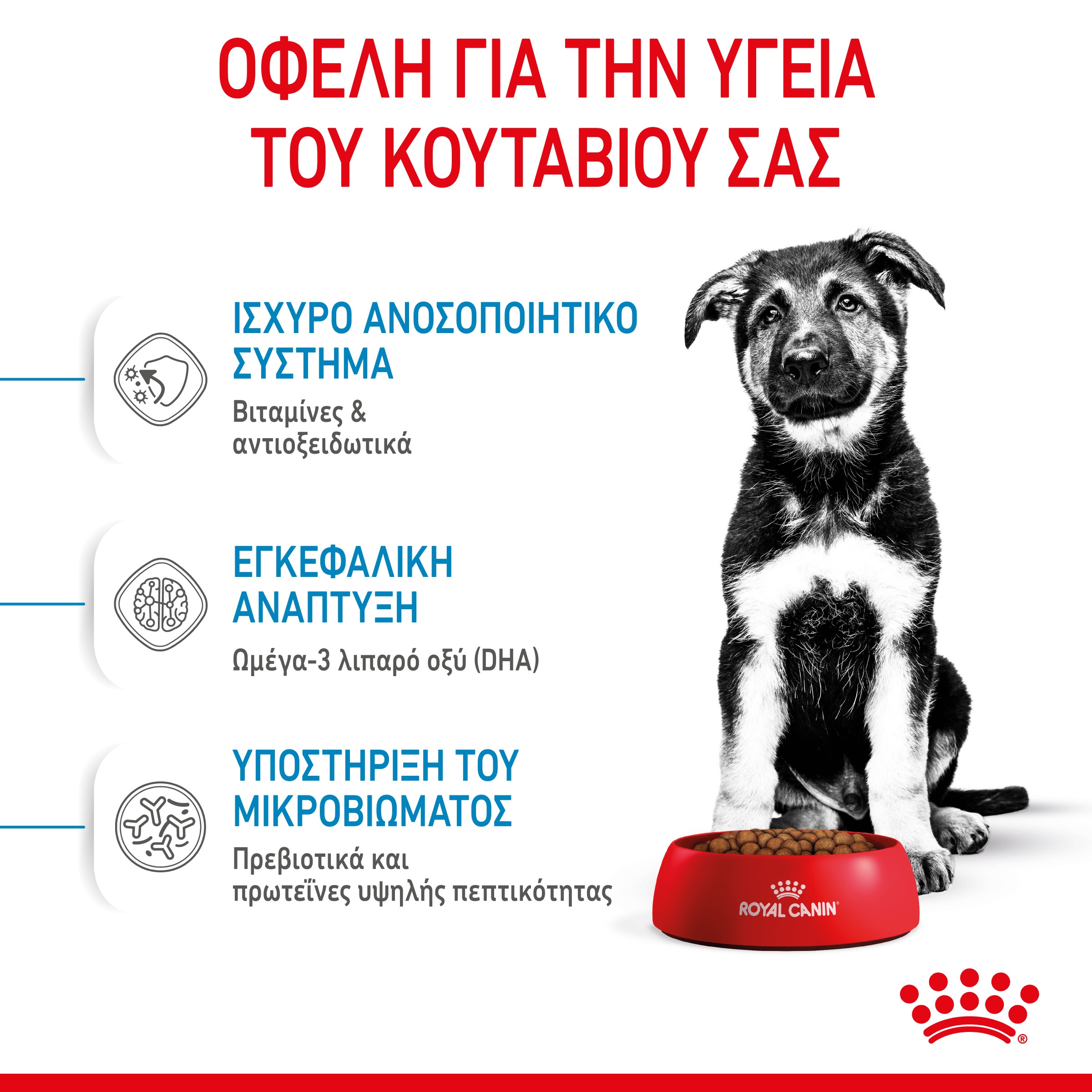 Πλήρης τροφή για σκύλους - Για κουτάβια μεγαλόσωμων φυλών (σωματικού βάρους ενήλικα από 26 έως 44 κιλά) - Έως 15 μηνών.