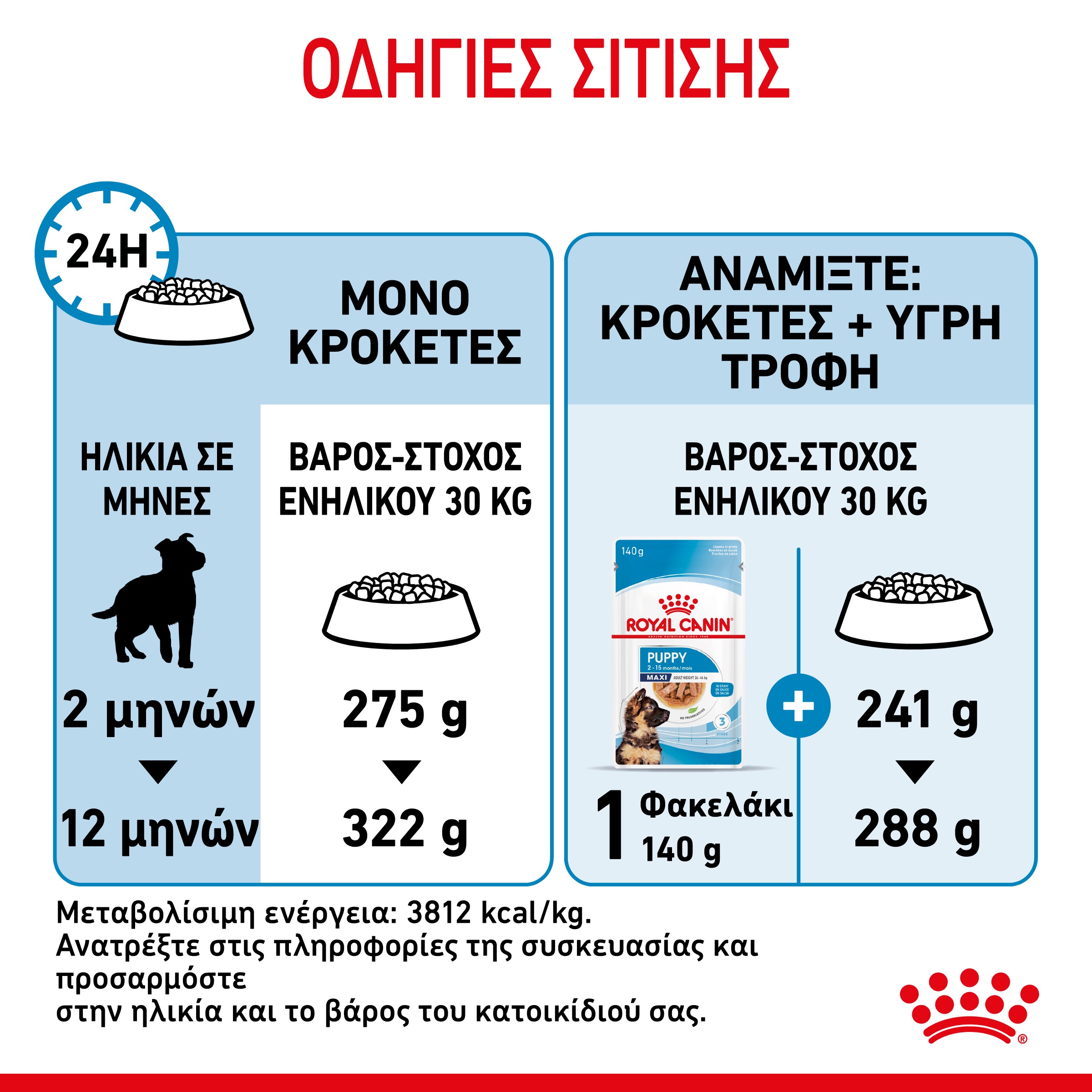 Καλύπτει τις μέτριες ανάγκες σε ενέργεια των σκύλων μεγάλου μεγέθους που έχουν μακρά περίοδο ανάπτυξης.