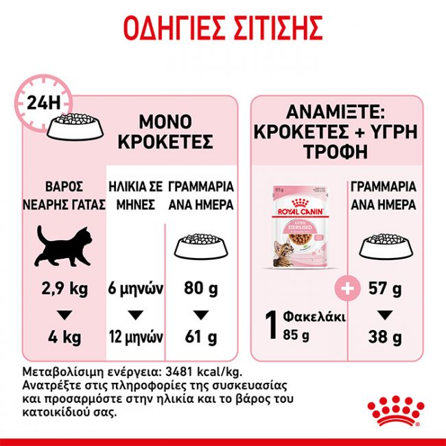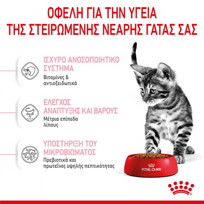 Το ROYAL CANIN ® Kitten Sterilized έχει σχεδιαστεί με τις ανάγκες της νεαρής σας γάτας κατά νου σε αυτή την κρίσιμη στιγμή στην ανάπτυξή του.