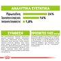 ΑΝΑΛΥΤΙΚΑ ΣΥΣΤΑΤΙΚΑ: Πρωτεΐνη: 24% - Περιεκτικότητα σε λιπαρές ουσίες: 16% - Ανόργανη ύλη: 5% - Ακατέργαστες ινώδεις ουσίες: 1.8% - Ανά kg: EPA/DHA: 4,5 g - Φωσφόρος: 5.5 g.
