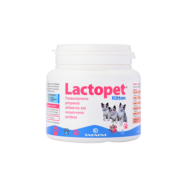 Το Lactopet Kitten είναι ένα πλήρες υποκατάστατο του μητρικού γάλακτος, στιγμιαίας παρασκευής, για γατάκια. Χάρη στα συστατικά του καλύπτει επαρκώς τις ανάγκες σε τροφή των νεογέννητων γατών αλλά και τις ανάγκες σε γάλα των ζώων σε ανάπτυξη. Περιέχει εύπεπτες, υψηλής ποιότητας πρωτεΐνες, λιπαρά οξέα, όλες τις απαραίτητες βιταμίνες, ιχνοστοιχεία και αμινοξέα που προάγουν την ανάπτυξη, ευρωστία αλλά και καλή λειτουργία του ανοσοποιητικού συστήματος της γάτας.