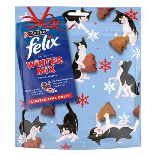 Το Felix® Winter Mix με γεύση Γαλοπούλα και Cranberries αποτελεί ένα ακαταμάχητο μείγμα λιχουδιών που είναι γεμάτες δελεαστικά αρώματα, υπέροχες γεύσεις και ελκυστική υφή.