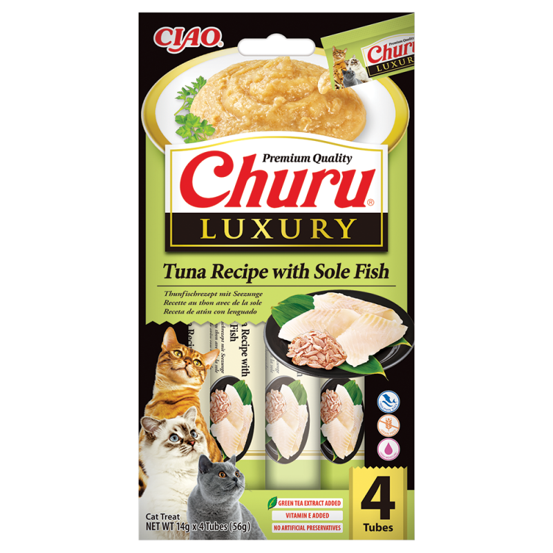 Κρεμώδης, νόστιμη λιχουδιά, με εκλεκτά πολυτελή συστατικά, σε γεύση τόνου με ψάρι γλώσσα. Χωρίς δημητριακά, συντηρητικά ή τεχνητά χρώματα. Με εκχύλισμα πράσινου τσαγιού, για αντιοξειδωτική υποστήριξη και υψηλή υγρασία για καλύτερη ενυδάτωση.