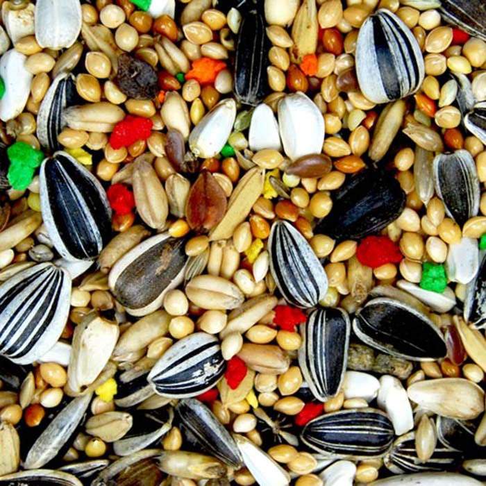 Συστατικά: Βορί Κίτρινο 37,5% , Βρώμη Αποφλοιωμένη 9% , Ηλιόσπορος Ριγέ Ψιλός 9% , Σιτάρι 7% , Βαρί άσπρο 6% , Βαρί Κόκκινο 6% , Ρύζι με φλοιό 5% , Κεχρί Καναδά 5% , Καρντί 5% , Kοκτέϊλ φρούτων 4% , Λινάρι 3% , Buckwheat 2% , Ηλιόσπορος άσπρος 1,5% .