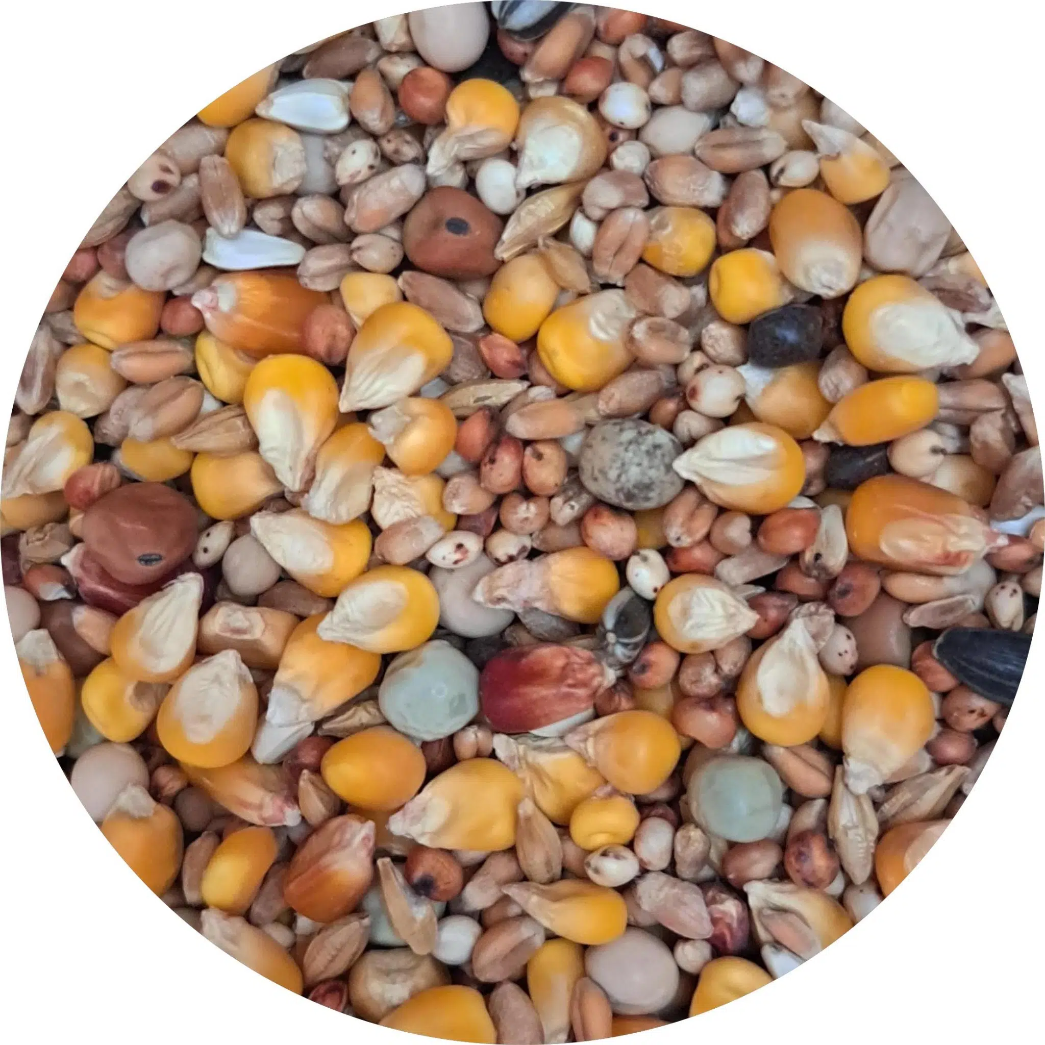 Συστατικά: Νταρί άσπρο 15%, νταρί κόκκινο 18%, καλαμπόκι 25%, καλαμπόκι κόκκινο 1%, μπιζέλι πράσινο 3%, μπιζέλι κίτρινο 7%, μπιζέλι maple 1%, σιτάρι 20%, βίκος 1%, ηλιόσπορος μαύρος 1,5%, ηλιόσπορος ριγέ 0,5%, ρύζι άσπρο 0,5%, καρντί 2,5%, κριθάρι 3%, βορί κίτρινο 0,5%.