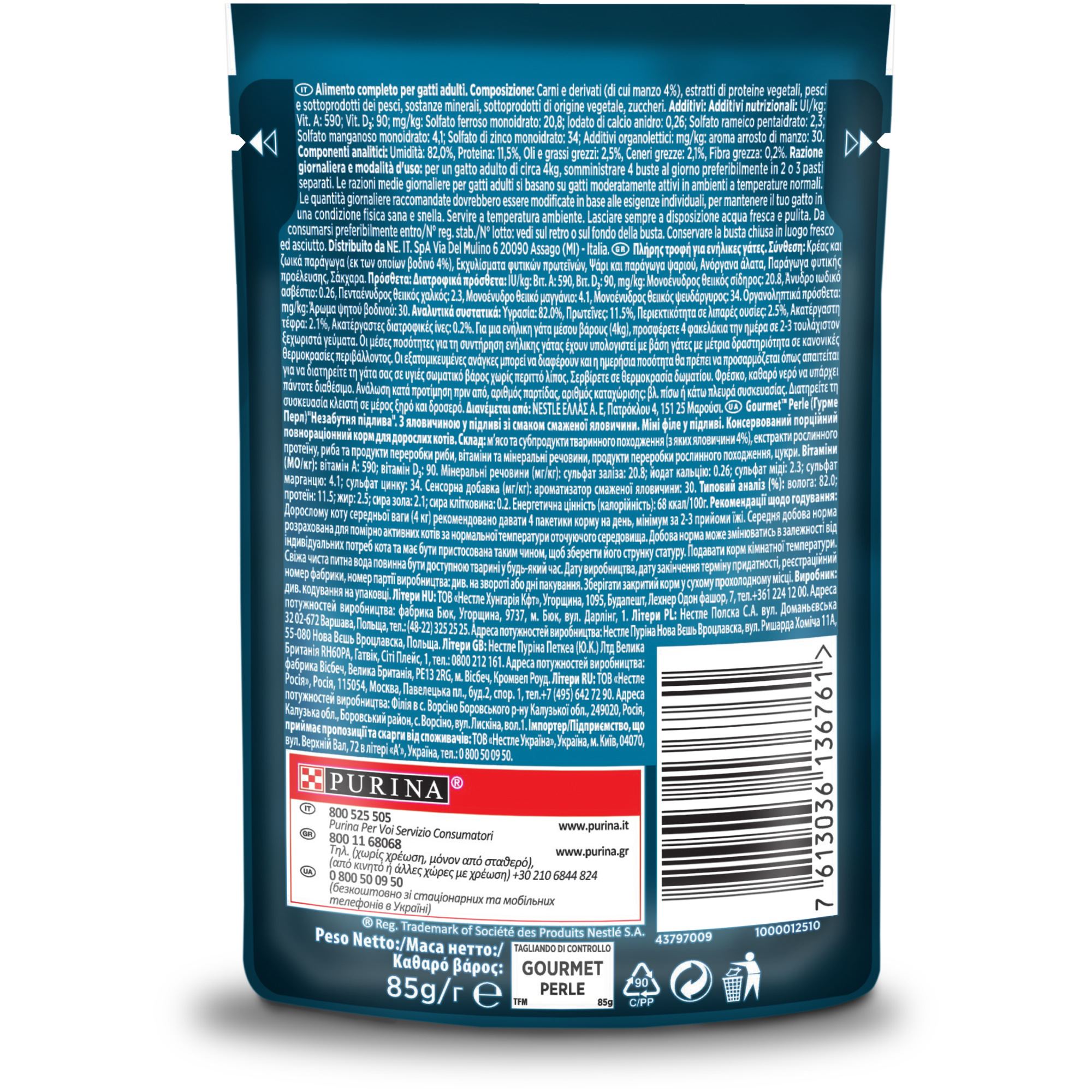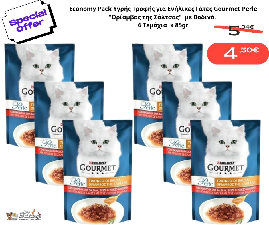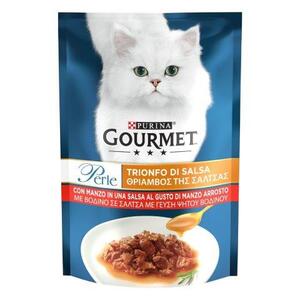 Economy Pack Υγρής Τροφής για Ενήλικες Γάτες Gourmet Perle "Θρίαμβος της Σάλτσας" με Βοδινό, 6 Τεμάχια x 85gr