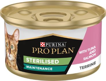 Υγρή Τροφή για Ενήλικες Στειρωμένες Γάτες Pro Plan Sterilised Maintenance Πατέ με Τόνο και Σολομό 85gr