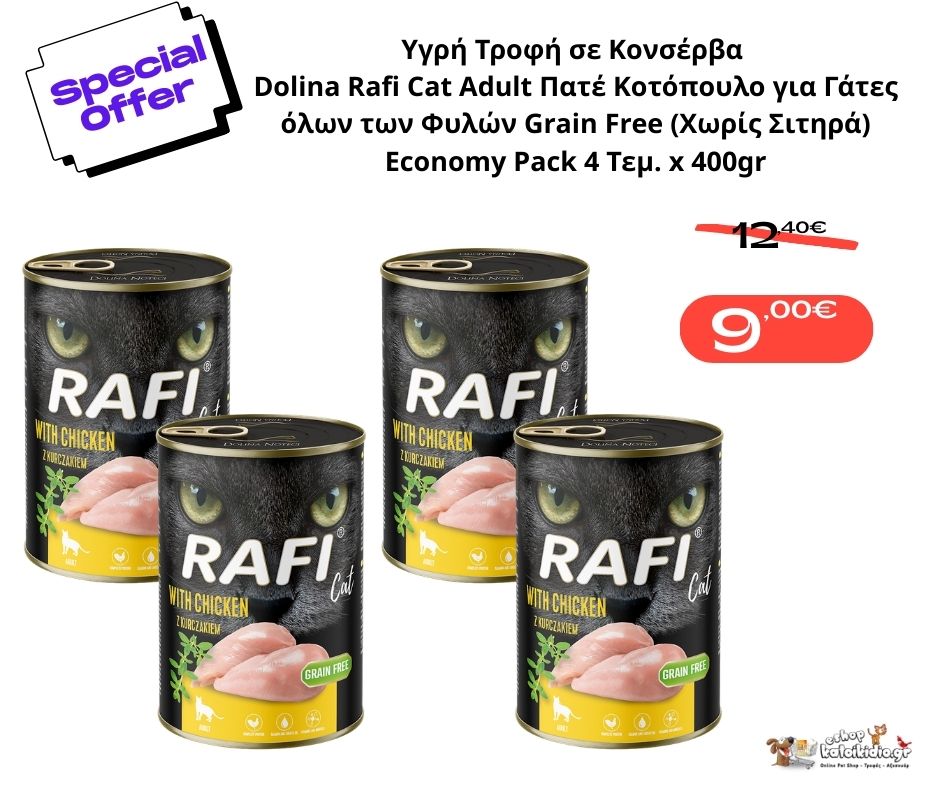 Υγρή Τροφή σε Κονσέρβα Dolina Rafi Cat Adult Πατέ Κοτόπουλο για Γάτες όλων των Φυλών Grain Free (Χωρής Σιτηρά), Economy Pack 4 Τεμ. x 400 γρ