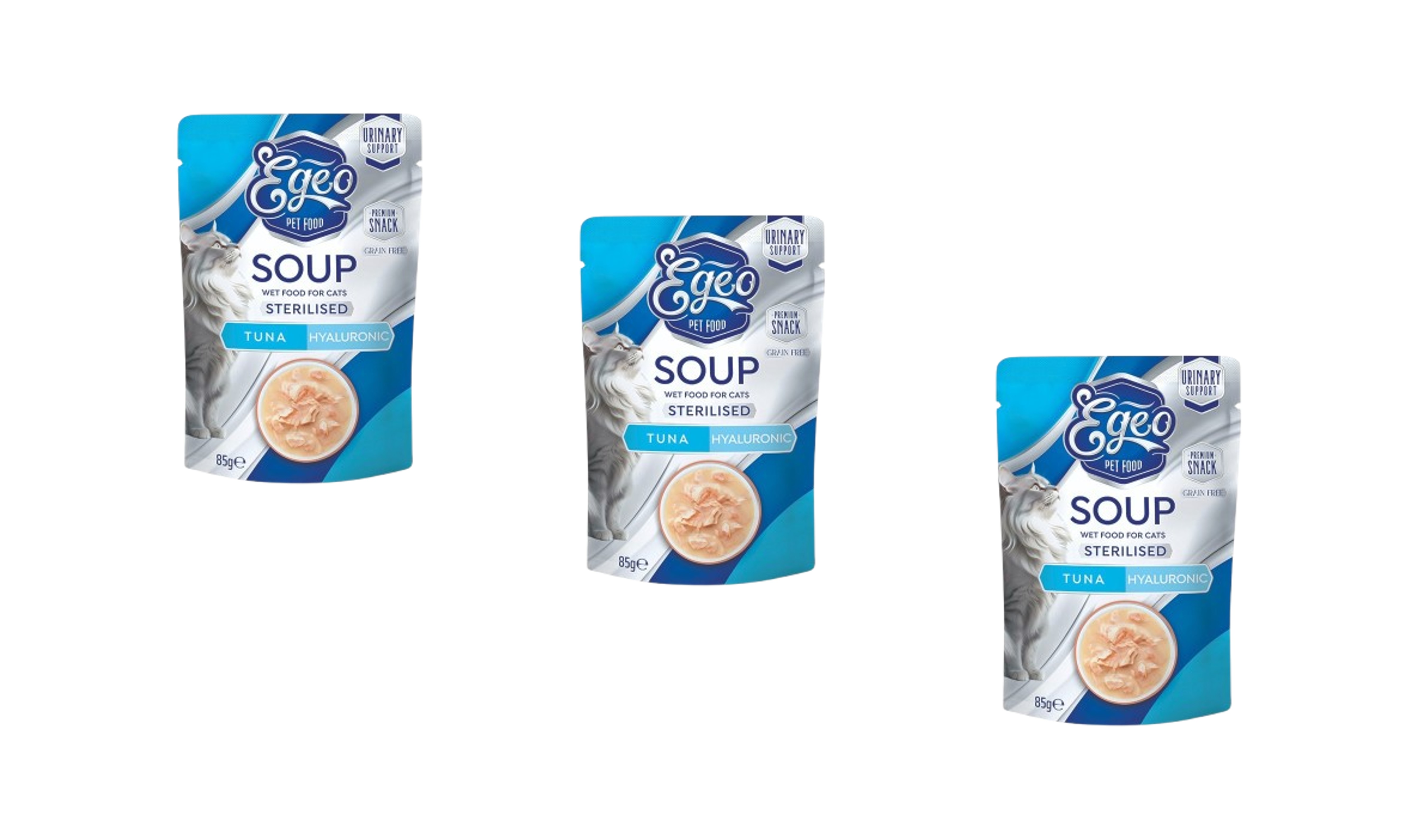Υγρή Τροφή Σούπα για Ενήλικες Στειρωμένες Γάτες Egeo Soup Sterilised Grain Free με Τόνο και Υαλουρονικό Economy Pack 3 Τεμ. x 85gr